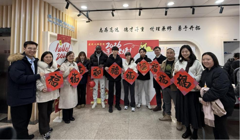 此次活动特别邀请了学院留学生代表参与,让异国学子近距离感受中国文化的魅力。留学生们被笔墨间的文化张力深深吸引,纷纷围在书法桌前,认真观摩老师的书写技法,主动向老师请教 “福” 字的寓意与春联的文化内涵。在老师的耐心指导下,部分留学生拿起毛笔尝试书写 “福” 字,虽笔触略显生涩,却满含对中国文化的热忱与好奇。老师们也络绎不绝地前来求取春联与“福”字,一张张承载着美好祝福的红纸,被贴进办公室、实验室,为学院的新年图景添上浓墨重彩的一笔。