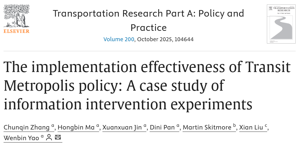 我院张春勤教师团队今年在Transportation Research Part A: Policy and Practice、Transportation Research Part C: Emerging Technologies、Transportation Research Part D: Transport and Environment、Cities和Transport Policy等交通运输领域权威期刊(中国科学院一区TOP)已发表论文6篇,研究内容涵盖交通政策分析与优化、绿色出行行为分析与多模式交通优化等,以实证和模型分析相结合的方式,为城市交通治理、低碳转型和...