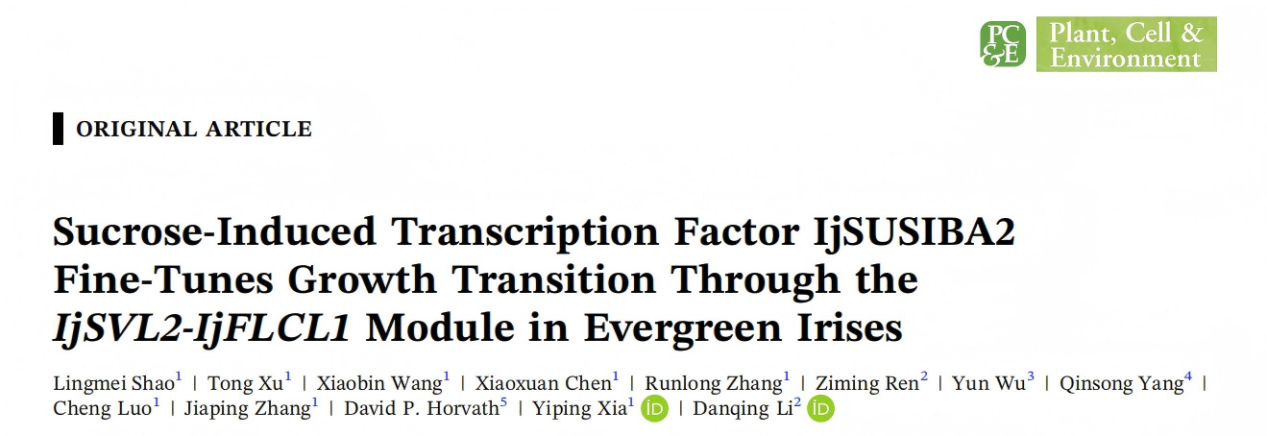 近日,由我院球宿根花卉创新团队的李丹青老师,任梓铭老师联合浙江大学园林研究所,在国际著名期刊Plant, Cell & Environment发表了题为“Sucrose-Induced Transcription Factor IjSUSIBA2 Fine-Tunes Growth Transition Through the IjSVL2-IjFLCL1Module in Evergreen Irises”的研究论文,揭示了糖信号转录因子IjSUSIBA2通过调控IjSVL2-IjFLCL1模块,影响淀粉代谢途径,从而调控常绿鸢尾蝴蝶花(Iris japinica)冬季生长转换...