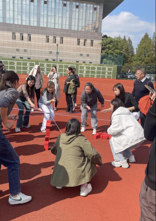 操场上人声鼎沸,热闹非凡。运动会共有“企鹅漫步、极限飞盘、合力建塔、袋鼠搬瓜”等4个团体项目的比赛。老师们一改往日安静斯文形象,纷纷化身“运动健将”。“企鹅漫步”中大家夹带三个瑜伽球前进,左右摇摆,宛如企鹅行走,憨态可掬。“极限飞盘”看似简单一掷,实则暗藏玄机,投掷准确率低,堪称全场最难活动,我院选手表现较出色。“合力搭建”10名参赛选手共同上阵,考验大家共同协作能力,更需要耐心细心。最后的“袋鼠搬瓜”项目,选手们身穿袋鼠服装,蹦跳前进,抢占时间,更是将比赛推向高潮,观战的老师呐喊声不断。
