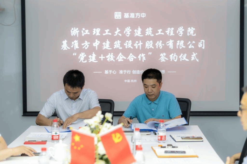会上,双方还举行了党建共同体签约授牌仪式,李娜和林启杰共同签署党建共建协议,并为党建共同体揭牌。建筑工程学院副院长刘勇和基准方中贺俊签订研究生联合培养协议并授牌。