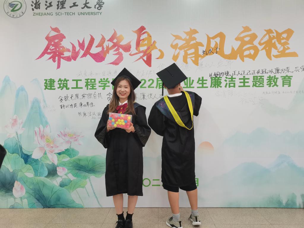 学院为毕业生发放了精心设计的“廉洁手册”,以“捧在手心的红色模型”为载体,印制了同学们自己手作完成的廉政建筑模型,希望同学们能够坚持立德修身,知行合一,做严于律己的奋斗者;坚持诚信廉洁,敬业奉献,做身清气正的追梦人。