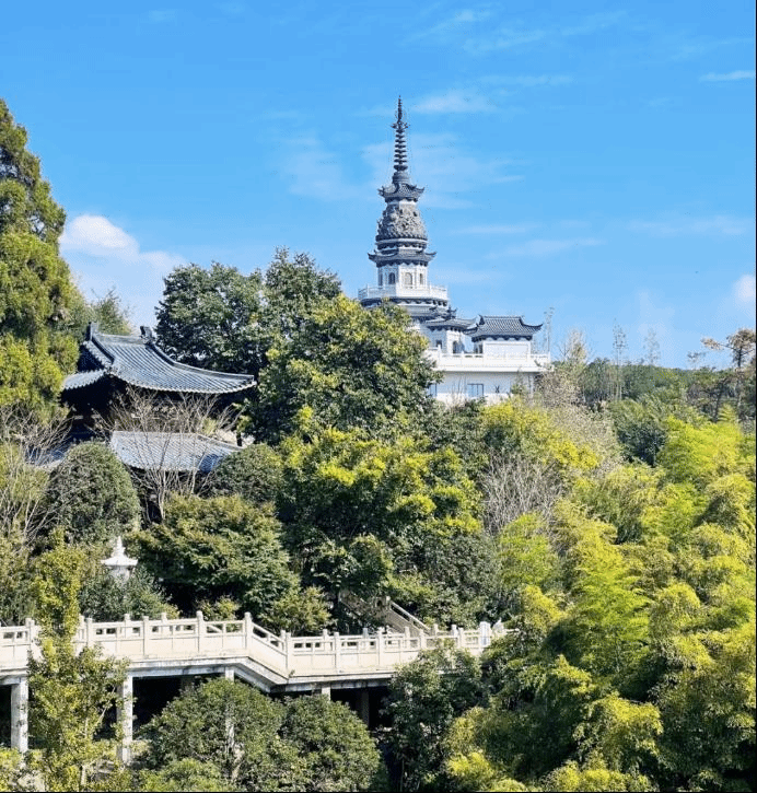 早上,在一路欢声笑语中,一行到达径山。登高途中,景色迤逦,茂林修竹,溪水潺潺,山路十八弯。弯道尽头是千年古刹径山寺。径山寺建筑是国内少见的宋代风格,被郁郁葱葱的茶园包围,是“茶道”文化起源地,在中外享有盛名。一行老师居高望远,一览秋日的山林美景。