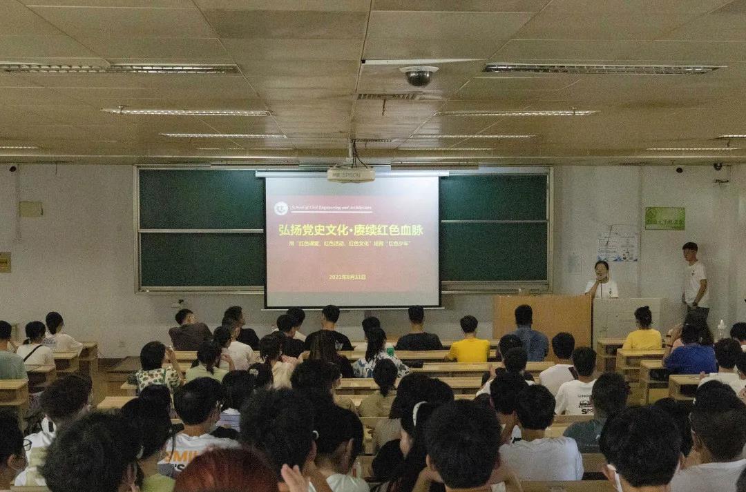 红色作为中华民族的底色,蕴藏在每个中华儿女的心中,经久不息,永垂不朽。为助力新时代大学生党性教育,让红色文化成为铸魂育人的精神动力,建筑工程学院党建委于8月31日上午主持举办了红色知识宣讲会,学院组织员、党建委指导老师巴楚洁出席本次宣讲会,全体21级新生参加。