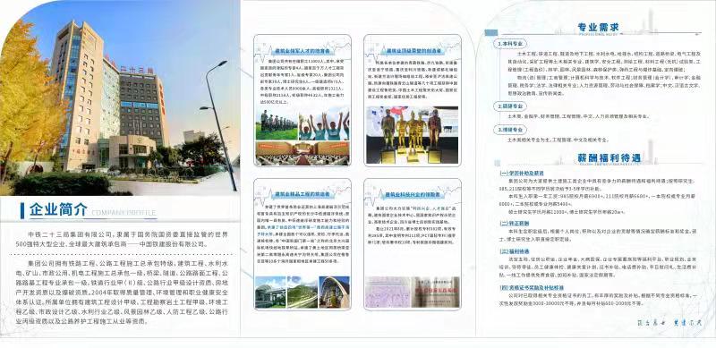 关于中铁二十三局集团有限公司校园招聘有几点补充:1.考上研的同学我们不收取违约金,考上研和我们联系后就去读研即可。2.集团轨道公司位于上海市,集团一公司位于山东日照,对于想留在华东片区工作的同学,在符合公司发展的前提下,基本是可以满足。3.土木大类、测量测绘、材料检测、工程管理、物流管理相关专业都需要,有兴趣的同学请投递简历至[email protected]