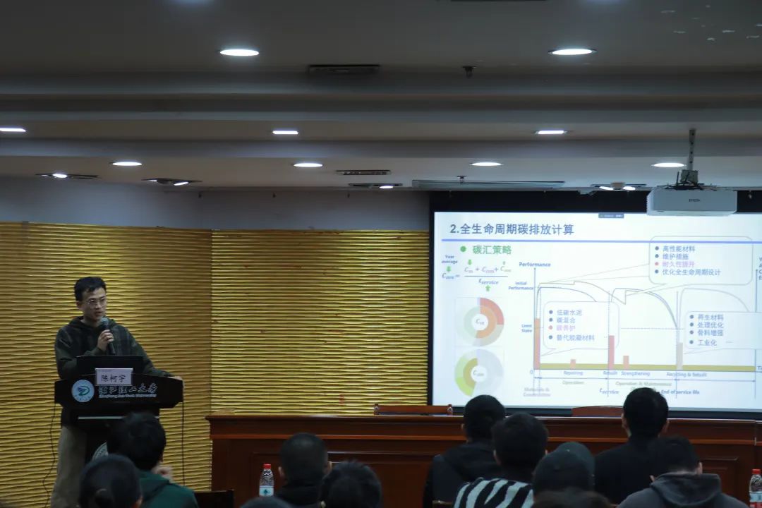 论坛正式开始,来自浙江大学建筑工程学院的陈柯宇博士做了题为《混凝土低碳技术的浅议与科研绘图技术的提升》的汇报,介绍了关于矿化养护技术的研究课题,分享了实用的制图经验。