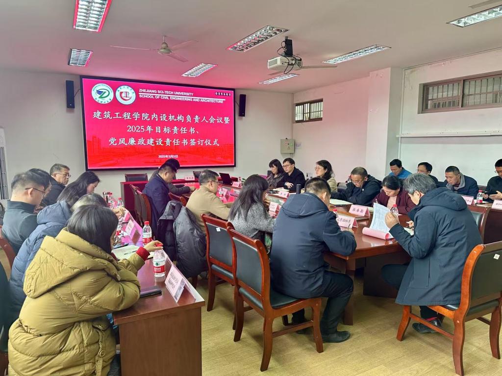 李娜、学术院长顾晓强代表学院与内设机构负责人签订了2025年目标责任书和党风廉政建设责任书。