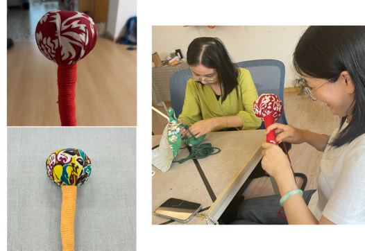 生日会上,学院分工会还准备了艾草养生锤手工制作活动。现场满满艾草香,在观看教程后,老师们铺料,压实,安装锤柄,绑绳......大家不时交流探讨,现场欢声笑语,其乐融融,很快一个个养生锤制作完成。
