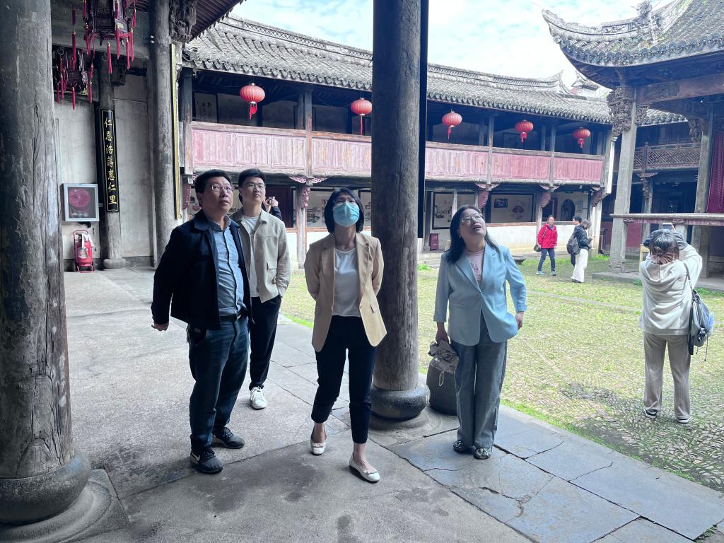 调研团受到了乡镇的热情欢迎,崇仁古镇周副镇长对古镇传统村落档案信息,政策和管理制度,保护资金筹措和使用以及文物保护、修复、利用等情况进行了介绍,希望学院发挥专业优势,在传统村落保护与文旅融合发展、传统村落保护与业态开发等方面提供发展思路和智力支持。