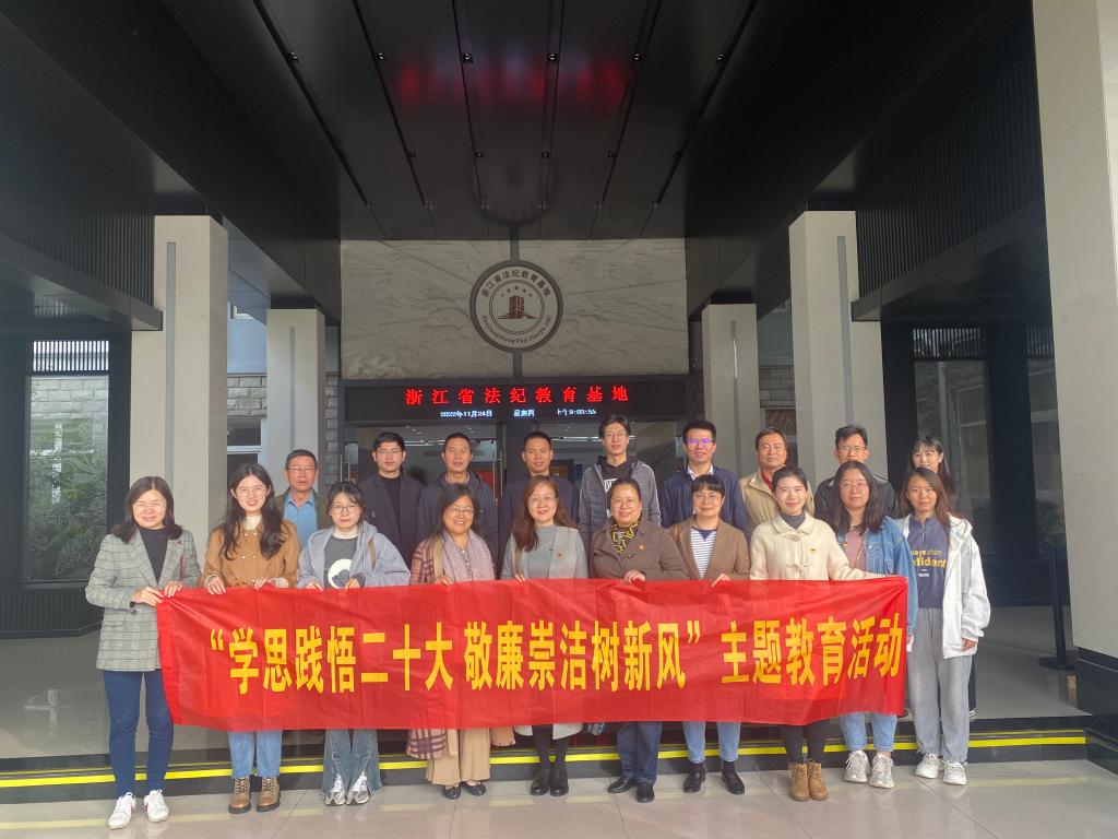 赴浙江省法纪教育基地开展“学思践悟二十大,敬廉崇洁树新风”主题教育活动,学院党委书记李娜,副院长刘勇、杨博,党委副书记、纪委书记郑磊,全体纪委委员、三办工作人员以及部分党员教师代表参加活动。