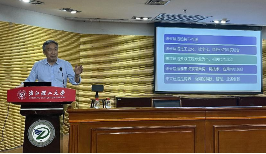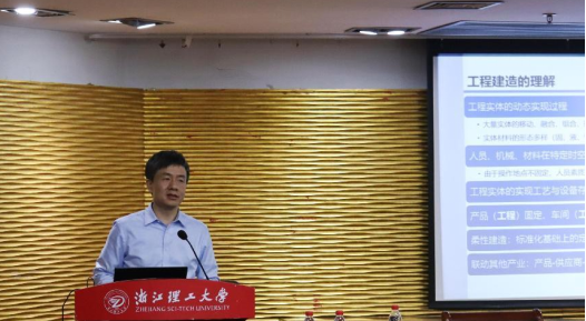 本次活动邀请的主讲嘉宾为浙建集团工程研究总院院长金睿教授和我校信息学院优秀教师陈海南特聘副教授。两位嘉宾围绕“未来建造的思考与实践”这一主题在工程建造、信息技术和人工智能等领域开展交流和探讨。金睿院长做了题为“工业化、数字化、绿色化背景下未来建造的探索与实践”讲座,讲述了智能建造内涵和实现未来建造的路径与方法,并结合“平急模块箱”、“零碳模块箱”等实际案例介绍了浙建集团在智能建造领域所做的探索和实践。