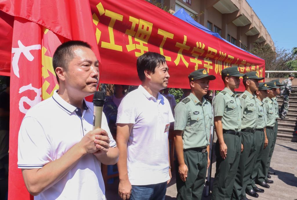 授旗仪式完毕,部队领导讲话。他简要介绍了本次承训部队的基本概况和军训准备情况。姚珺讲话。她向承担本次军训任务的部队官兵致以谢意和敬意,并向全体带训教师和新同学表达了问候和祝愿。随后,参训学员代表和教官代表分别发言。