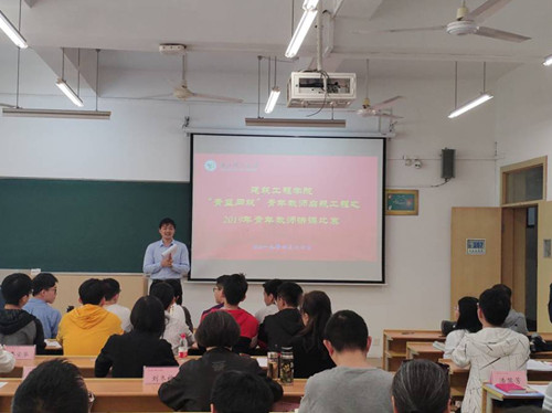 “青蓝同筑”青年教师启航工程之2019年青年教师讲课比赛在2-S107教室举行,来自土木和建环系的4位年轻教师参加了本次比赛。本次比赛邀请到学校教师教学发展中心专家阎玉秀教授和学院教学督导组老师作为评委。比赛由学院副院长吴大志主持,包括学院全体青年教师在内的四十余位老师现场观摩了本次比赛。