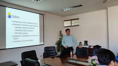 邀请到从事路面及路面材料研究的温海防副教授来我校开展相关学术交流。作为优秀科研教授,他的相关科研项目有着直接应用价值和重大贡献,在海内外都取得了十分丰硕的成果,曾被美国交通官员协会评为高价值科研项目。