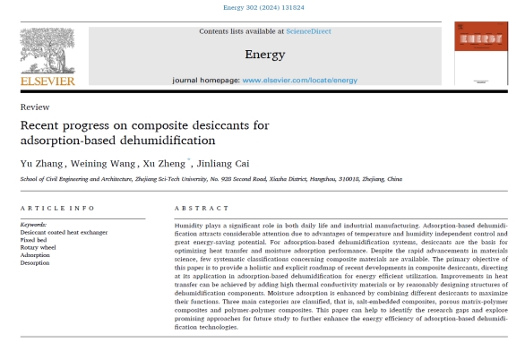 郑旭教师团队在Energy上发表了题为“Recent progress on composite desiccants for adsorption-based dehumidification”的综述论文,报道了近年来固体除湿领域复合干燥剂的研究进展。av影片直播