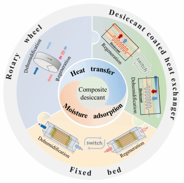 湿度在日常生活和工业生产中发挥着重要作用。高新技术的发展和节能减排的需求是当前高效除湿技术面临的挑战。吸附式除湿技术能够将温度和湿度进行独立控制并具备节能潜力,因此被认为是蒸汽压缩制冷技术的一种有前途的替代技术。对于吸附式除湿技术而言,干燥剂肩负着去除待处理空气水蒸气的重任,是优化其热湿传递性能的基础。