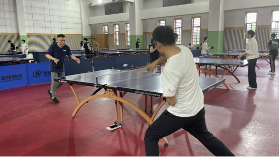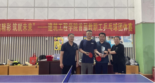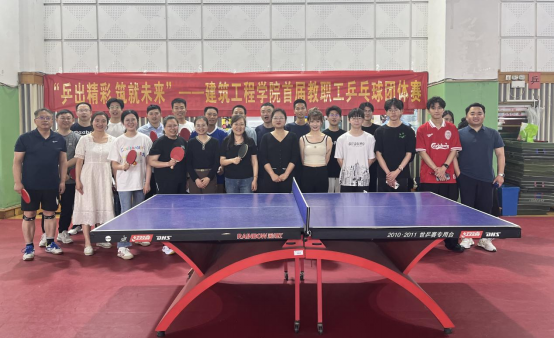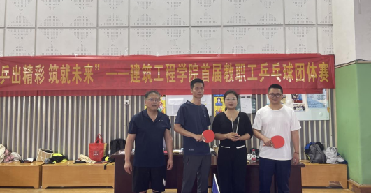 分工会举办的“乒”出精彩,“筑”就未来——首届教职工乒乓球团体赛在校乒乓球馆举行。
