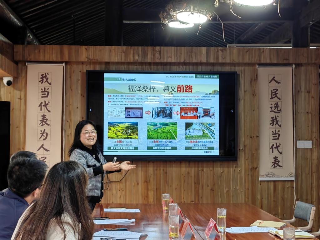 座谈会上,洪艳教授重点介绍了为前路量身打造的“缙云前路乡前路村设计方案”,提出以“福泽桑梓,幕义前路”为主题,将前路村建设成“浙江省山区乡村生产性景观示范基地”的设想。胡文君对洪教授的设计方案表示肯定和真诚感谢,表示将集中力量深入研究,结合前路实际,分阶段落地,让前路在共同富裕的道路上越走越好。随后,双方围绕党建联建、产学研合作、暑期社会实践等工作开展了深入座谈,双方对接需求,聚焦发展,在建设教育教学实践基地、“共同富裕”红色讲堂,举办“我在缙云话初心”等活动方面形成共识。调研组为了进一步给前路村做好乡村规划方案设计,还用航拍的方式补充采集了一些景观资料。