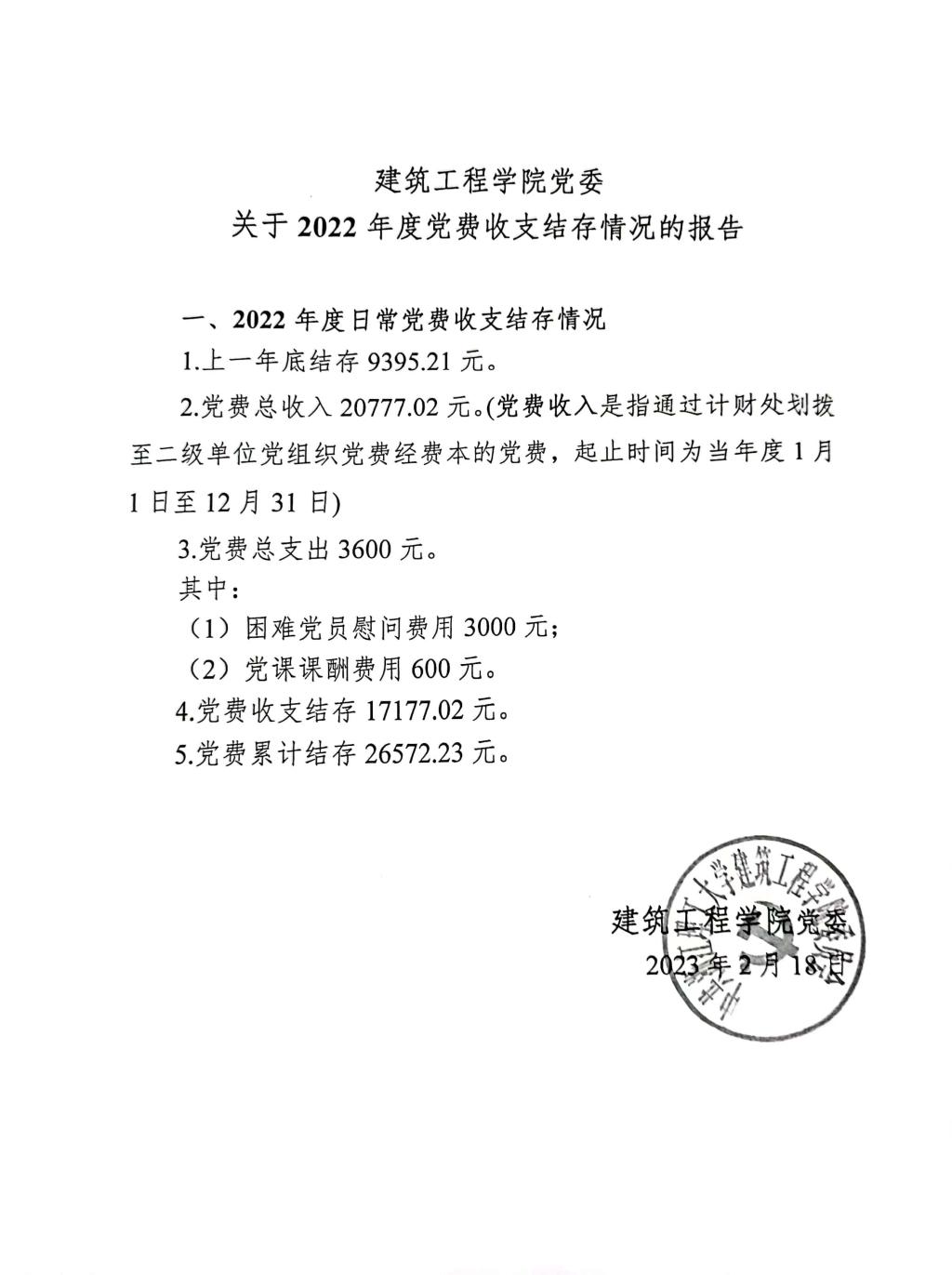 av影片直播 党委关于2022年度党费收支结存情况的报告