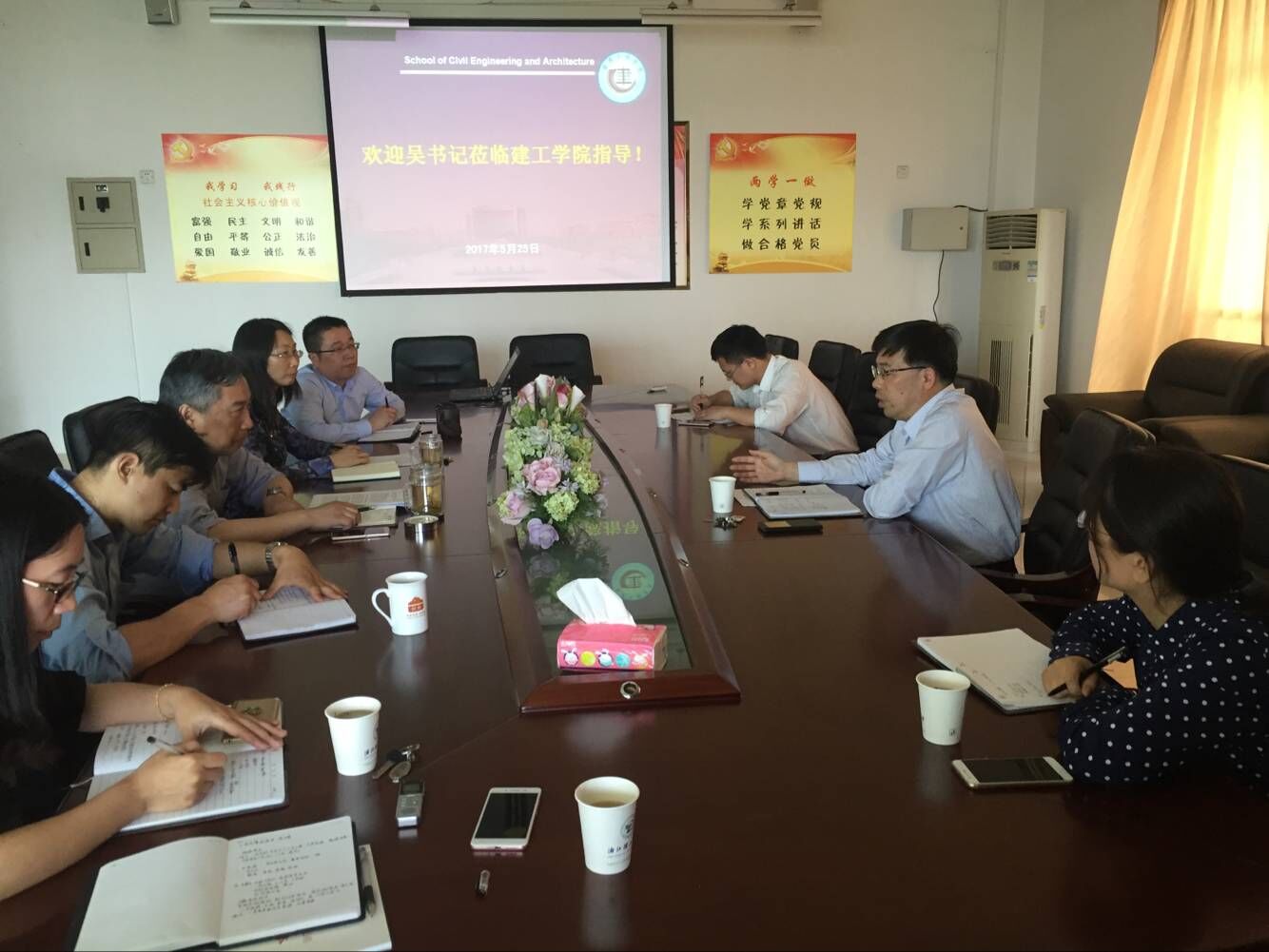 525日上午,学校党委书记吴锋民到建工学院调研和指导工作,党委办公室副主任朱秋飞及相关工作人员随同调研。学院党政班子全体成员参加了调研。