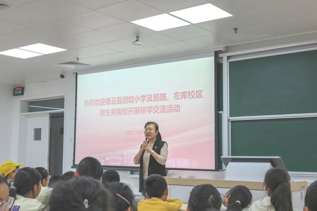 学院党委书记李娜首先致欢迎词。她对缙云县团结小学教育集团师生们的到来表示热烈欢迎。她指出,本次研学活动是学院党建引领下推动大中小学思政教育一体化的生动实践,希望同学们在接下来的行程中学有所获,让红色基因在心中生根发芽。她表示,今后要加强两校合作,进一步丰富党建交流活动。