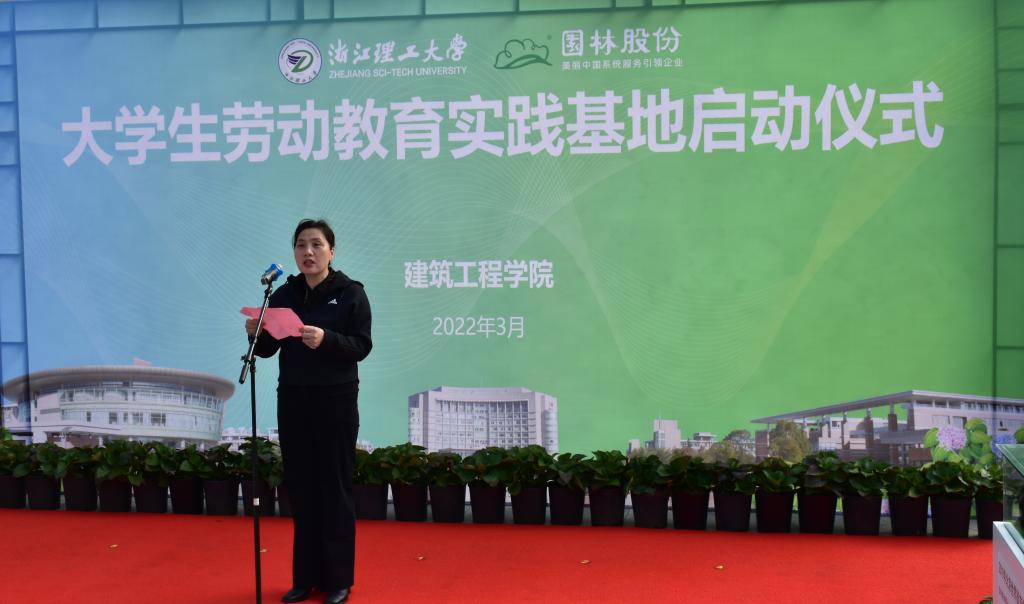 大学生劳动教育校内实践基地揭牌,李娜、俞峰为学生劳动教育实践校外导师颁发聘书。杭州市园林股份有限公司研究院工程技术中心主任张楠作为受聘学生劳动教育校外导师代表发言,表示将以身作则,言传身教,悉心指导同学们以专业引领实习实践,以劳动教育促进专业学习。许慧霞为课程思政建设专家指导委员会委员颁发聘书。