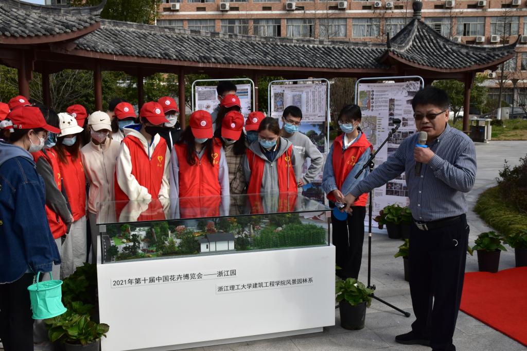 最后,风景园林系卢山教授为20级风景园林专业学生现场讲授了一堂《风景园林工程设计》之“绣球花”教学暨劳动教育课。卢老师从花博会讲起,讲授了绣球花的特性、使用场景,延伸到绣球花因代表希望、团结的寓意。