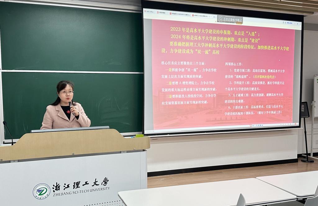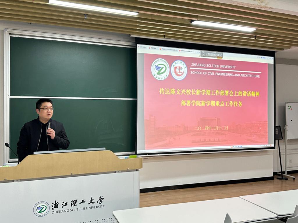 3月13下午建筑工程学院2N119教室举行新学期工作部署会暨全体教职工大会会议集中学习了全国教育工作会议、浙江省“新春第一会”等会议精神;传达了党委书记赵全军校长陈文兴在2024年工作部署会的讲话精神和学校第四次党代会动员部署会、全面从严治党工作暨清廉浙理建设推进会相关精神等号召全院教师激荡奋发向上、锐意进取的信心,奋力完成新一年重点工作任务,推动学院高质量发展迈出新步伐。学院全体教师参加会议会议由学院党委书记李娜主持